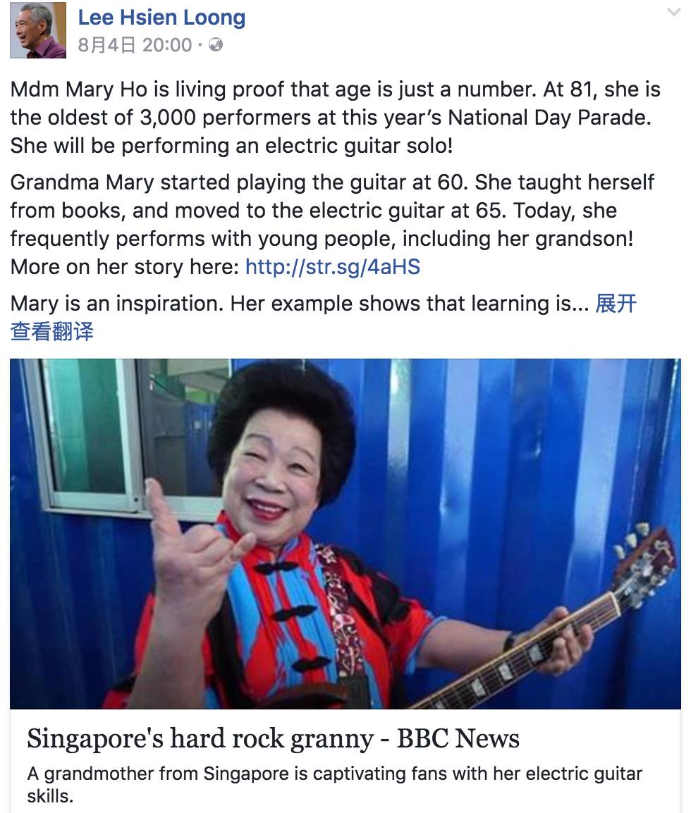 就连新加坡的总理李显龙也转载了有关玛丽奶奶的新闻报道,并评论说,“活到老,学到老,这才是榜样!”