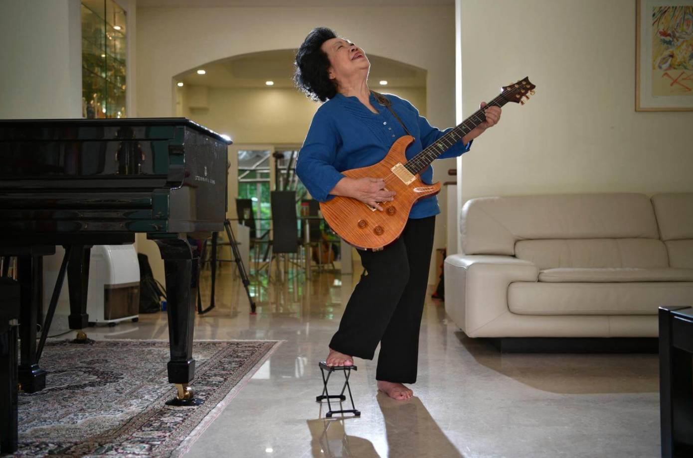前不久,这个神奇奶奶在新加坡的52周年国庆庆典(新加坡每年最大型的活动,隆重程度基本等同于我们国庆节的阅兵仪式)上,用电吉他弹了两首热情四射的曲子,震惊了包括新加坡总统、总理等在场的所有人!