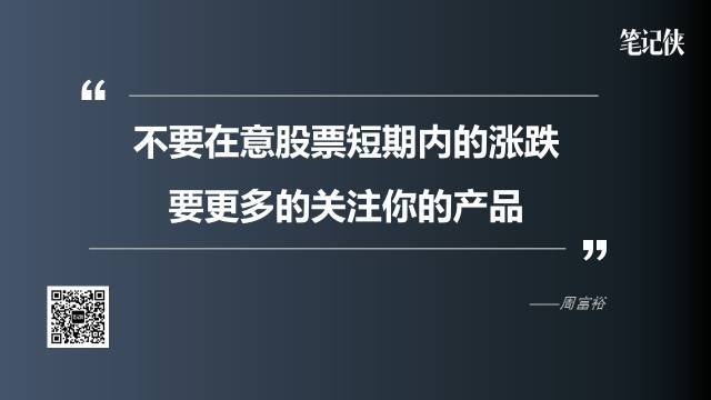 因此他给新上市公司的忠告是:不要在意股票短期内的涨跌,要更多的关注你的产品,只要你的产品能够让消费者满意和喜欢,未来股价就不会差。