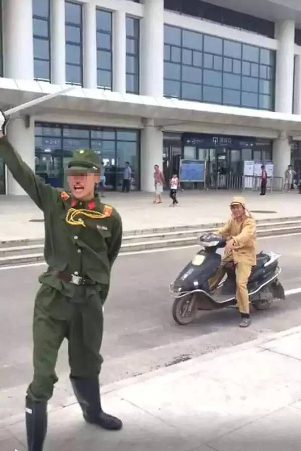 ▲8月13日,广西两个男子身穿日本服装在宾阳高铁站作秀。两男子称只因“想当网红”,于是穿日本军装高铁站作秀。