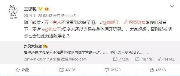 因为三年前,娱乐圈出现了轰动一时的大老板与金丝雀事件。起因是因为当初郭敬明和陈学冬传绯闻。两人传闻愈演愈烈,就连王思聪也加入了八卦的队伍表示“随手转发~万一有人还没看到这个帖子呢...”