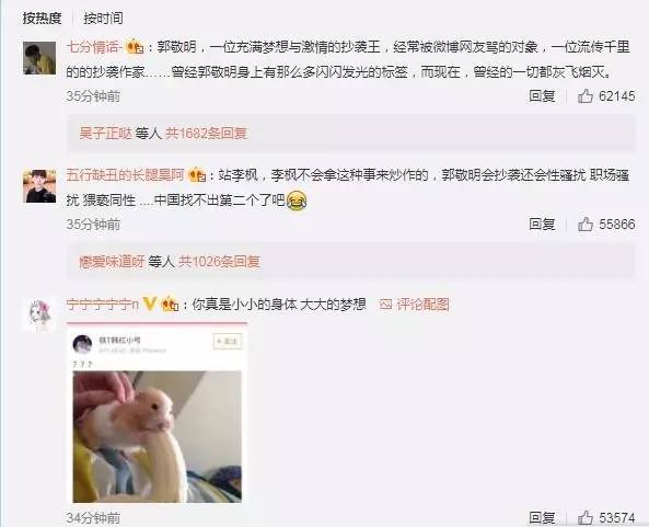 截止到目前,公开信的转发已经超过十万,评论六万多,郭敬明很快就上了微博热搜榜第一: