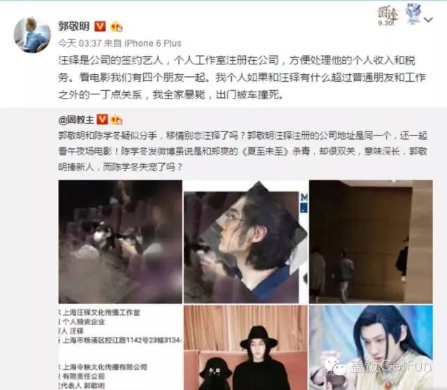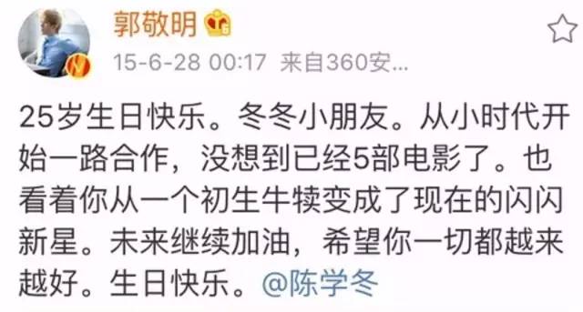曾经有娱乐营销号称郭敬明和陈学冬疑似分手,移情别恋,郭敬明还出来辟谣,态度非常激烈。