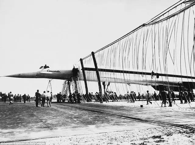 ▲ 协和式飞机的设计和测试工作在英国和法国进行了数年,其中包括1967年在图卢兹的这次振动测试。