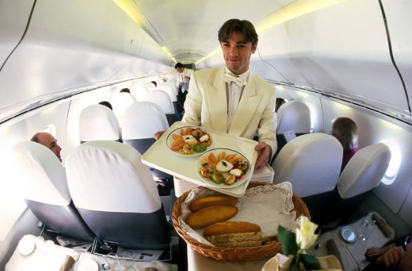 ▲ 1998年4月,“协和”机组人员在向摄影师展示飞机餐