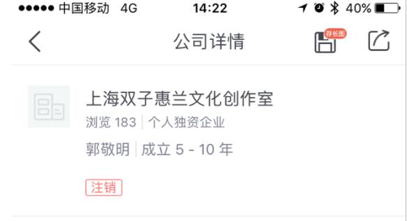 ▲上海双子蕙兰文化创作室已注销(数据来源:启信宝)