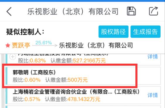 启信宝数据还显示,郭敬明还是6家公司的股东,包括乐视影业,其出资500万,出资比例0.6%。