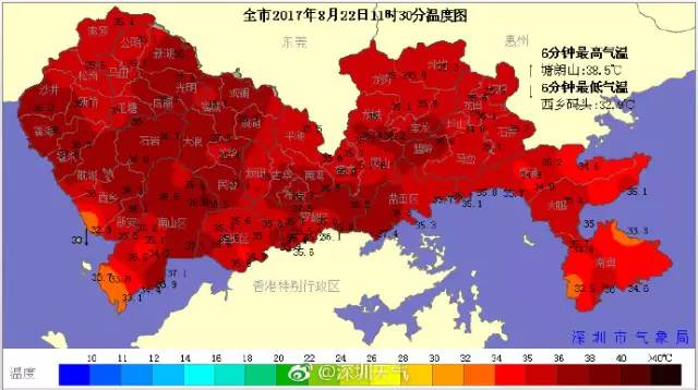 下雨的地方26度,没下雨的宝安仍是……36度。