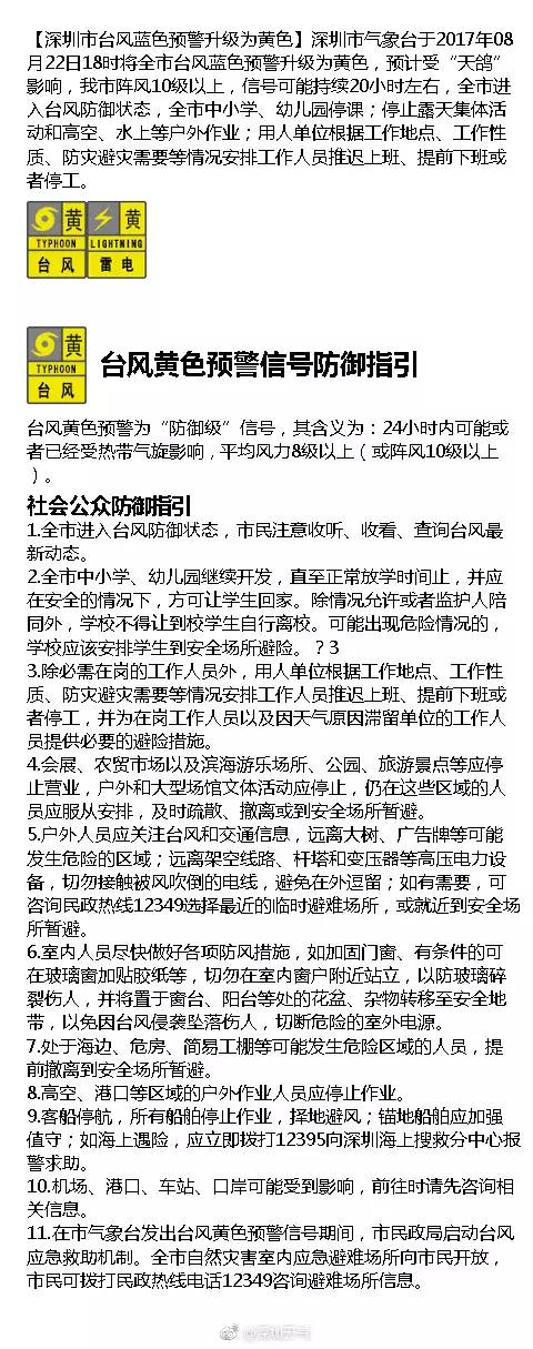 目前,全市将进入台风防御状态。@深圳天气消息,托儿所、幼儿园和中小学停课;用人单位视情况停工。
