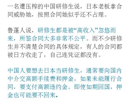 一些日本网民认为,研修生不是正式劳动者,当然不能给劳动者的钱;还有人留言“要是有意见就别来日本”。