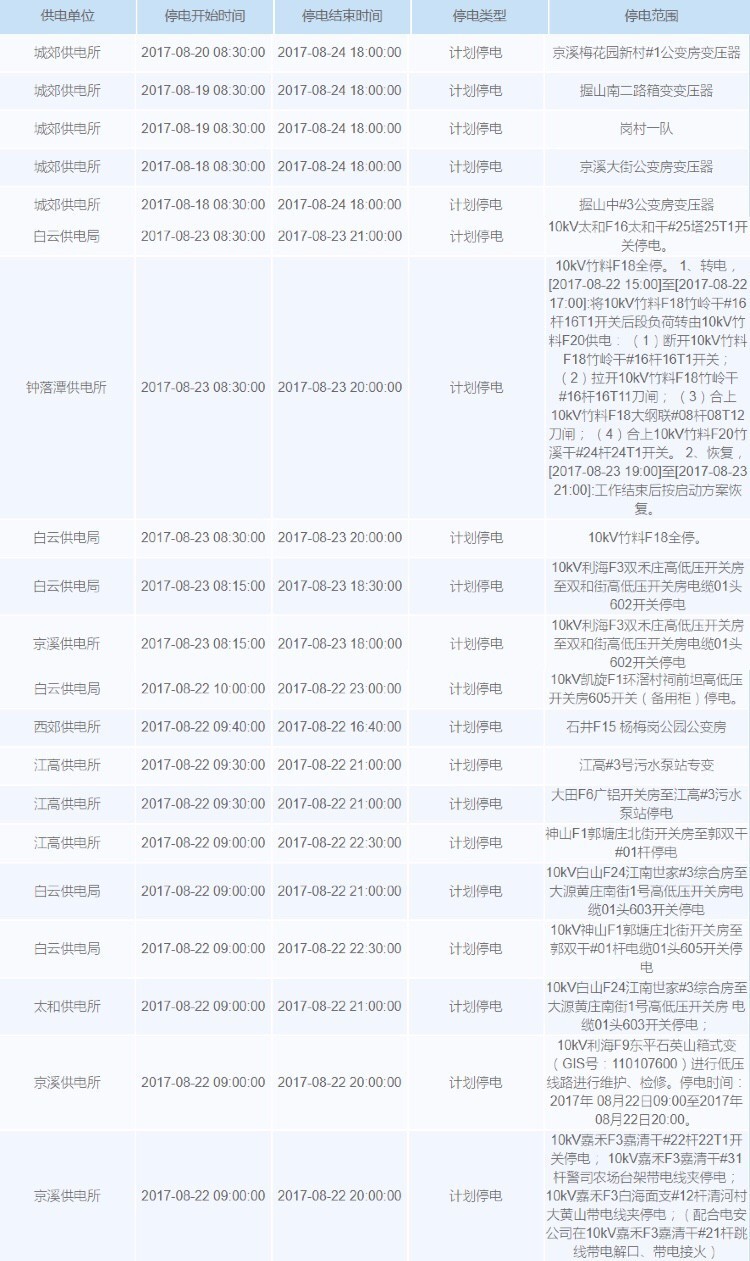 本次计划停电中,影响的地方较多!