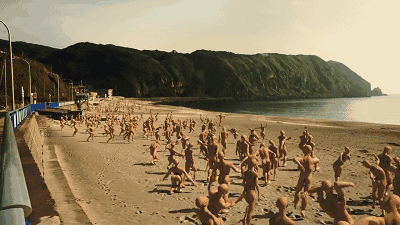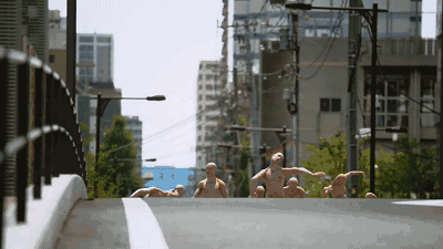 表情呆滞的男主光着屁股跑了一路,