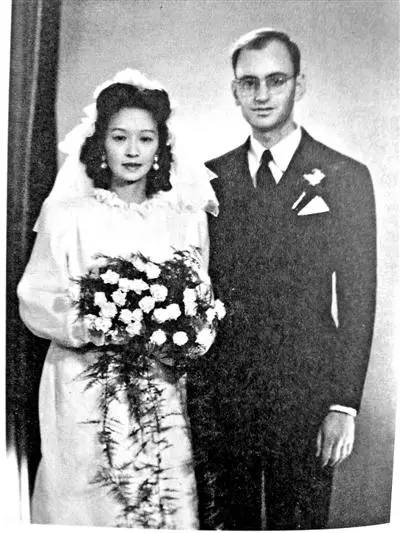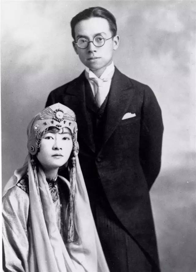 ▲ 1928年3月,梁思成与林徽因在加拿大结婚照。婚纱是林徽因自己设计的。