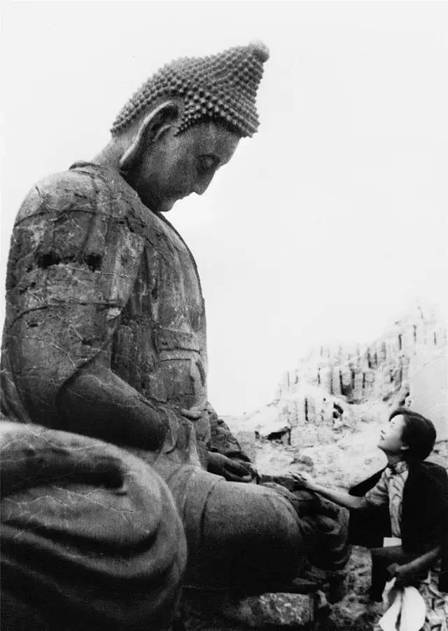 ▲ 1934年林徽因在汾阳小相村灵岩寺(梁思成摄)