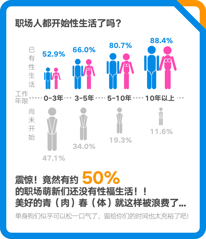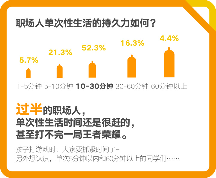 一句话证明你工作压力很大?半年没有性生活成了职场人认可度最高的神回复。近期,脉脉数据研究院对近两千名中国职场人群进行了一次性生活调查,发布了《中国职场人群性生活调查报告》。
