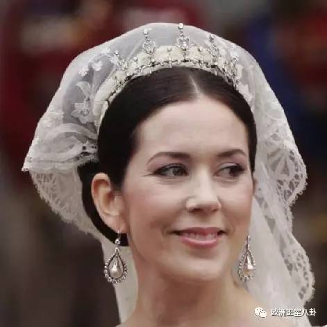 丹麦王储妃玛丽和王冠配套(?)的结婚礼物耳环