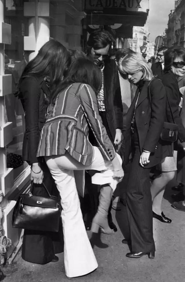 70年代的街拍里也经常出现白色Flare Jeans,
