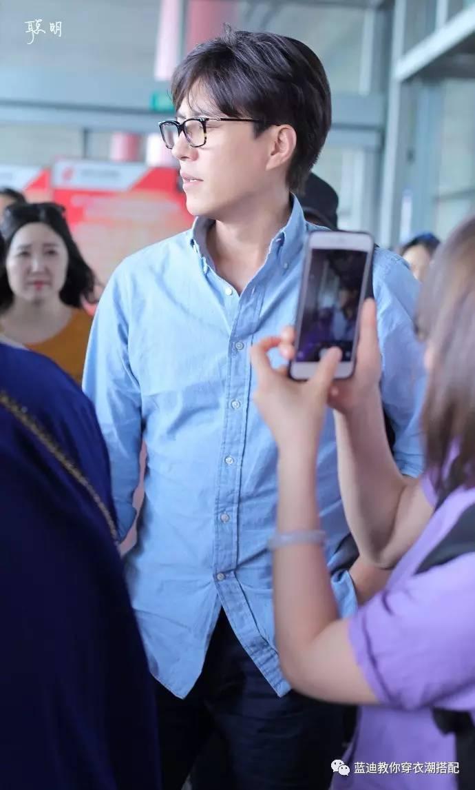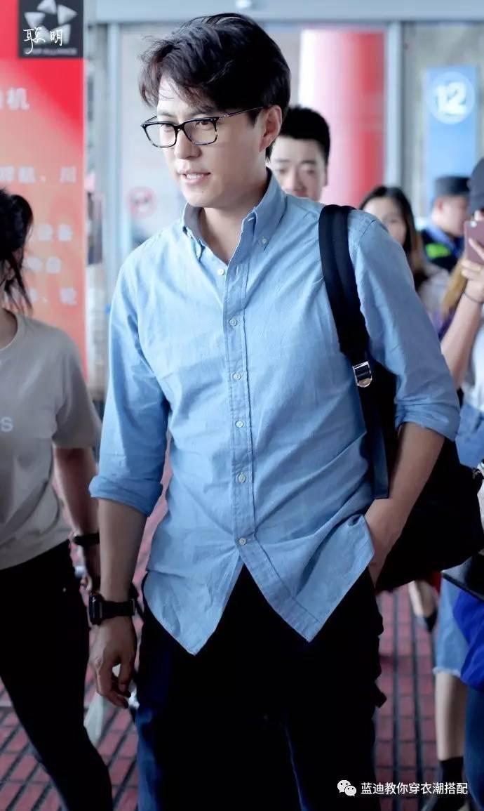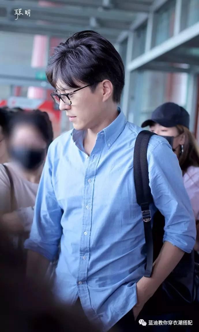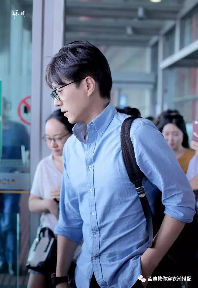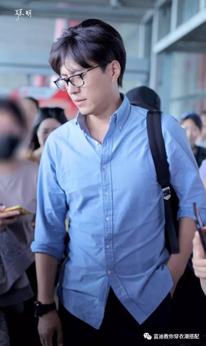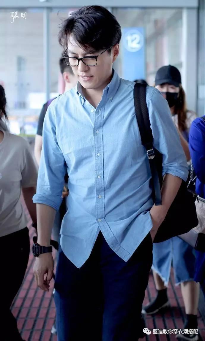 靳东北京机场街拍,一件简单的蓝色衬衫配黑裤,再配上一副再普通不过的黑框眼镜,自带的气场足够让他抛开“老干部”标签化身男神!