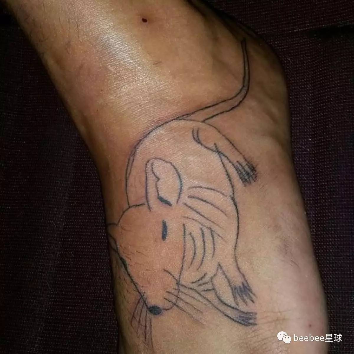 扎完之后,男友看着自己腿上这个来势凶猛的蝙蝠,不知所措。