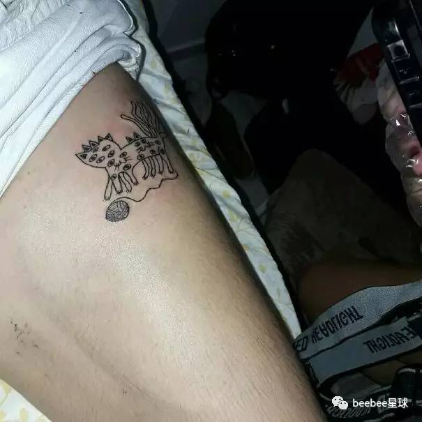 INS一位顾客请求Helena在手臂上纹上自己的爱猫,自己也吸猫的Helena满足了他,于是便有了这个经典的猫tattoo。