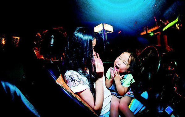 李少云在机场等客时和女儿依依在车内玩闹。