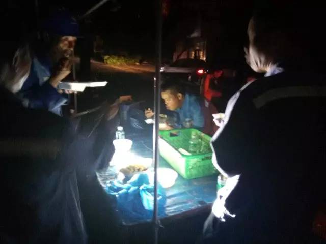 23日晚9点,高明明城供电所抢修运维人员刚结束一场复电作业,开始吃晚饭。