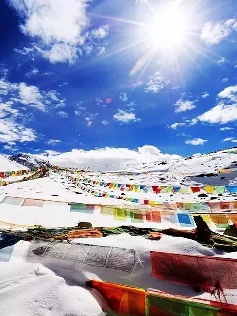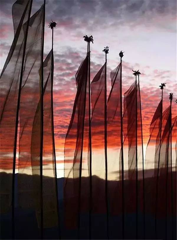 山顶的风大声朗诵彩色幡旗上的祈祷文,林间的水默念推移着孤单旋转的经轮。