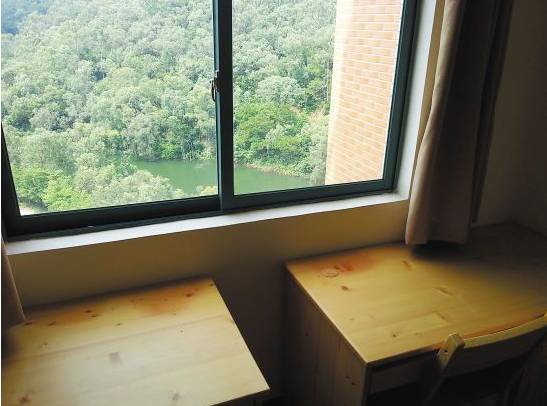 窗外的景色还是青山绿水,真的是一个读书(养老)的好地方。各楼层两部电梯直达,每间宿舍都设有wifi热点,无线网络全覆盖。
