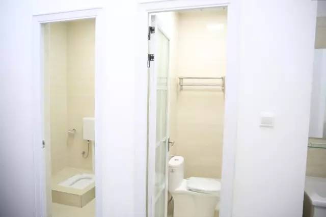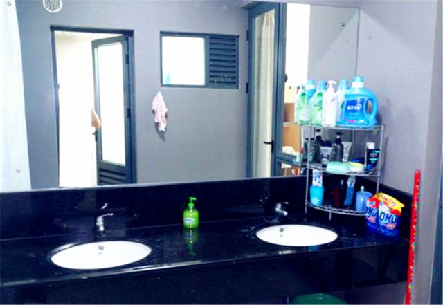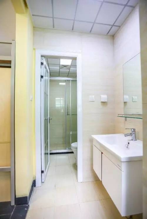 四人一间,面积约30多平方。宿舍内统一设置的饮水机。宿舍内设空调、电风扇、独立的浴室卫生间和洗漱台还有宽敞的阳台。