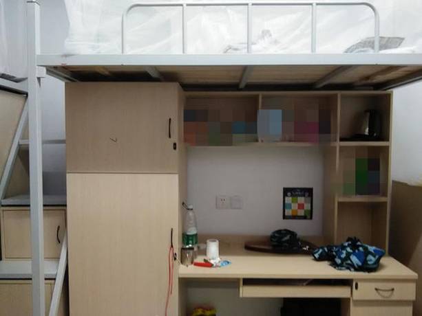 4人上床下桌宿舍有独立卫生间,有空调;每个人有独立书桌衣柜、宽带接口。拉上床帘,就有了单独的个人空间,住宿费1500元。