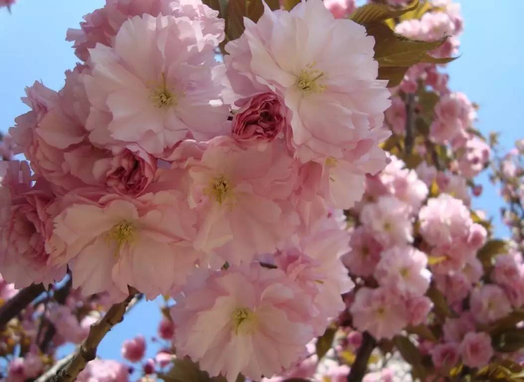 一朵朵粉嫩穿过碧绿翘首仰望天空