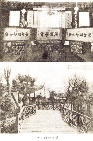 哈同夫妇热衷于中国古典文化,还在园内开办了仓圣明智大学,这是一所从小学到大学的全日制学校,学生的膳食、住宿和学杂费全部由园内提供。