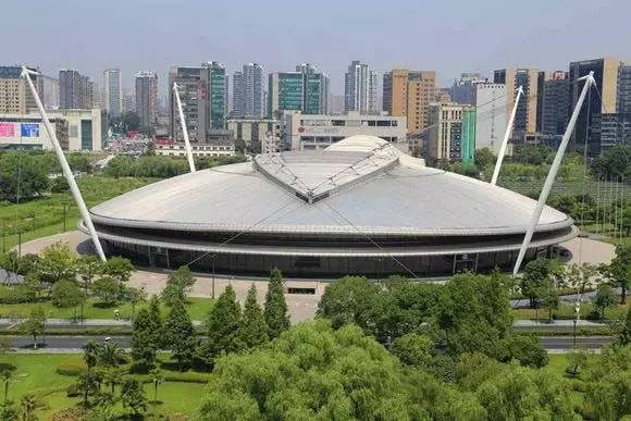 这座坐落于浙江工商大学校园内的羽毛球馆,最大的特点就是规模大,总面积有19000多平方米,包括一座主馆和一座副馆,其中主馆面积就有13000多平方米,可容纳5400多人,副馆作为热身馆,同样符合正规比赛标准。