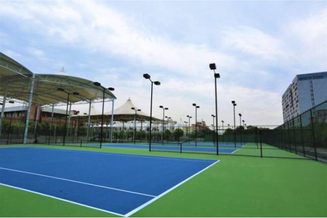 网球场于2016年10月8日开始进场施工,2017年5月18日竣工验收。整个过程中,新建8片网球场,面积共计6200平方米。每片网球场配备“恰好时”牌的专业球柱、球网、休息椅、裁判椅、推水器、软挡网等配套设施,其中两片网球场上加盖风雨棚,两边砖砌三级看台。