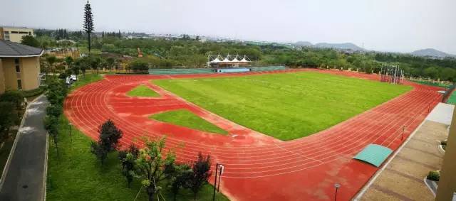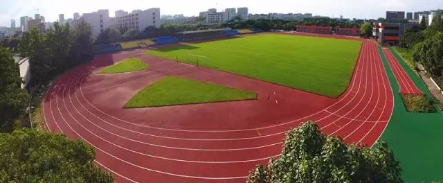 紫金港校区西南面有一个巨大的田径场,拥有400米长8跑道塑胶标准跑道,9个标准篮球场,1个自然草坪足球场。今年9月7日,全国学生运动会女子足球赛将在这所中学的紫金港校区举行。