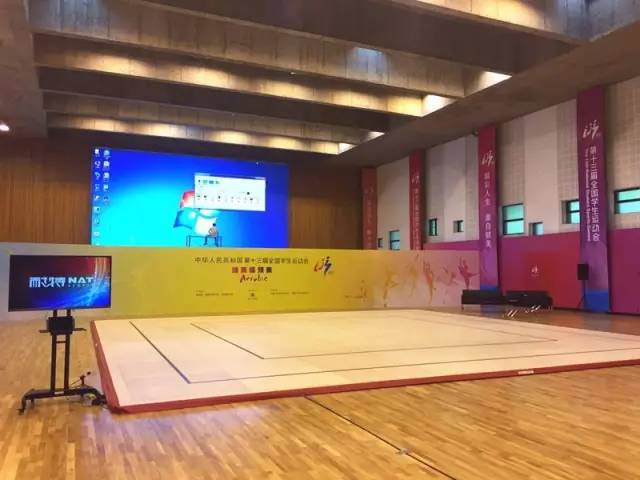 学院在去年9月就已经完成了所有硬件设施的改造,包括增加了新的中央空调,对场馆进行重新粉刷,座椅调整和翻修等。全新的LED大屏幕也在今年5月正式进驻。为了达到全国学生运动会的标准,学院充分利用空间,在体育馆里设置了兴奋剂检测房、更衣室和卫生间,各类功能房齐全,真正地做到了方便运动员和裁判员。