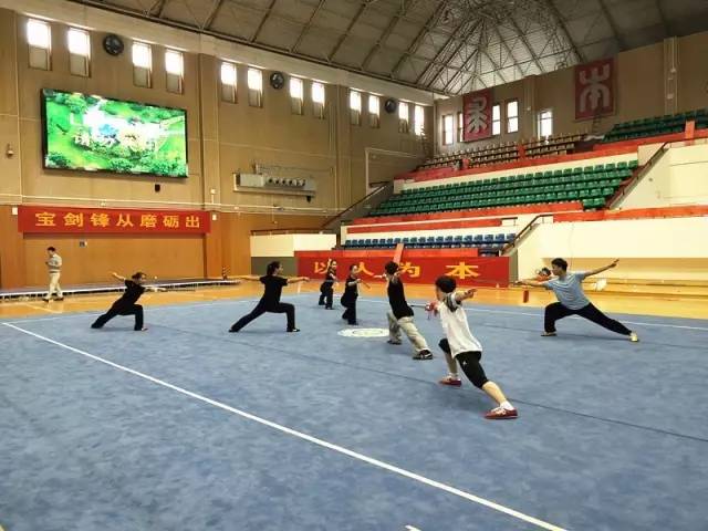 严格来说,这并不能称作武术场馆,6个月前,这个占地约2000平方米的体育场馆尚属综合性场馆,主要用于体育教学和学生日常活动,虽然也有武术项目专用区域,但是较小。现在,12x18米的专用武术地毯铺设于场馆中间,灯光系统、音响系统均已调试完成,加上1300多平方米的全透明玻璃房副馆,806个观众席位,这里的条件已经达到了国家级竞赛场馆标准。