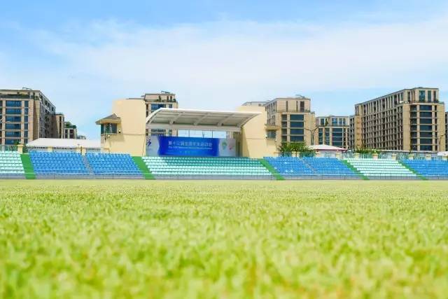 中国计量大学体育场位于学校东北角,由两片标准十一人制足球场和三片五人制足球场规整地划分在一起,其中十一人制足球场的草坪属自然草,面积7800平方米,看台拥有2300个座位,是本届运动会大学组女足比赛的赛事场地。