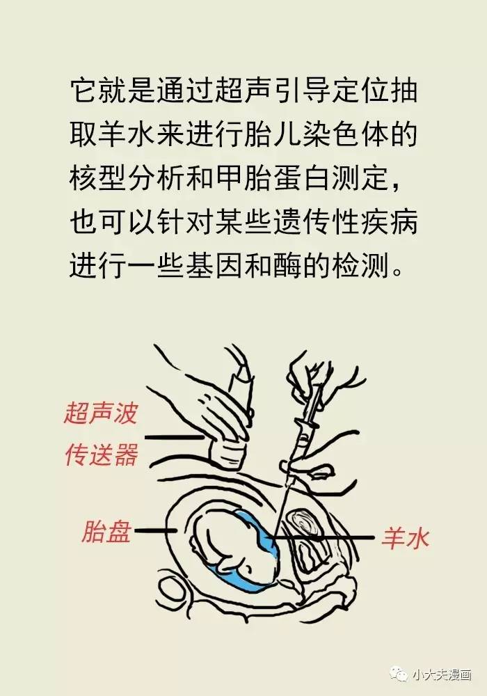 无创DNA没有通过的孕妈,一定要去做产前诊断(多数情况下为羊水穿刺)确诊。如果你觉得羊水穿刺很可怕,不妨看看下面的漫画。