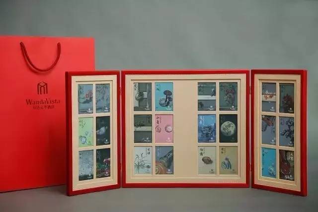 如果你想收藏,万达酒店及度假村还特别定制了《格物四季》礼盒套装,以精致的木纹喷漆结合雕刻工艺,将全套房卡完美的呈现在内。礼盒外观大气雅致,浓郁鲜明的红体现出传统的华贵,盒内24张房卡如24幅精美的小品陈列其中。