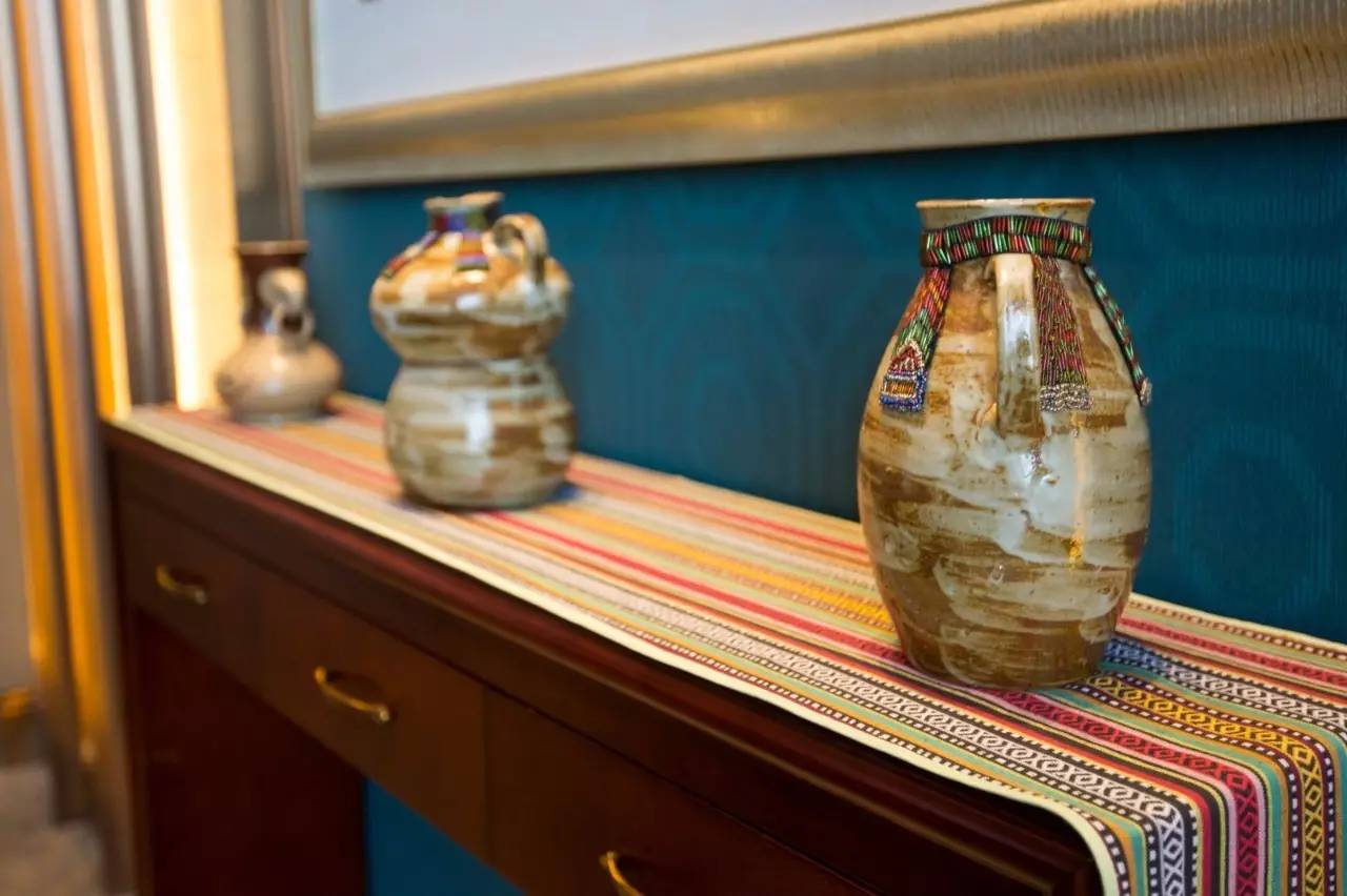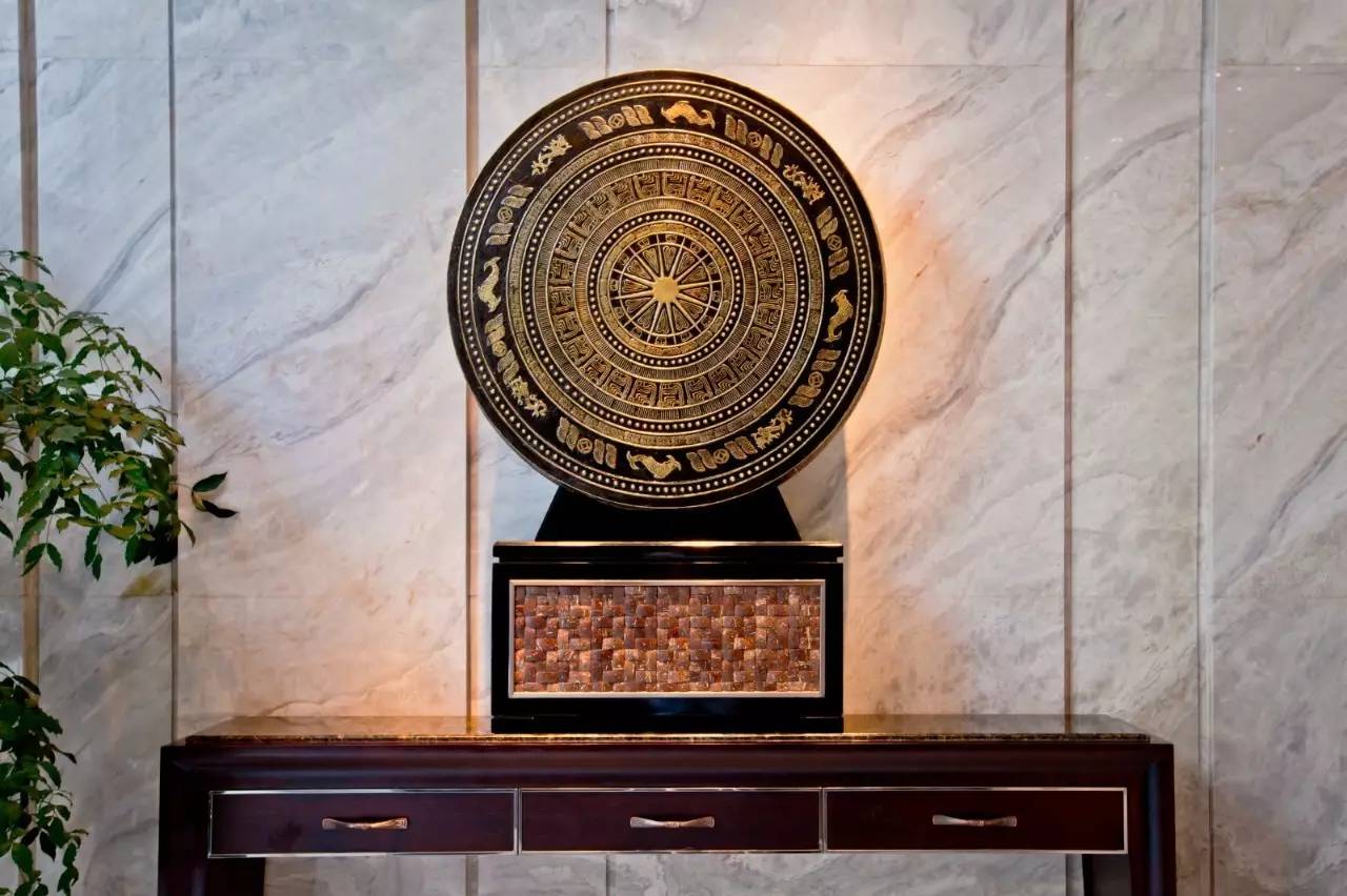 铜鼓,也是酒店随处可见的元素。广西的铜鼓,从古代的祭祀所用到如今庆祝节日,至今还回荡在壮乡瑶寨的上空,丰富着壮族人民的生活。