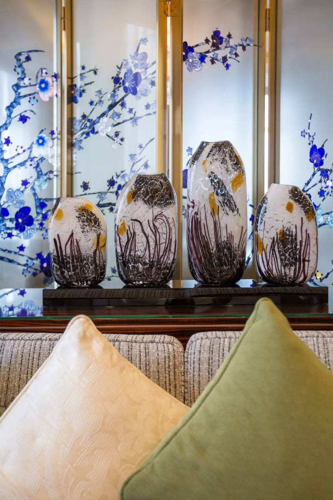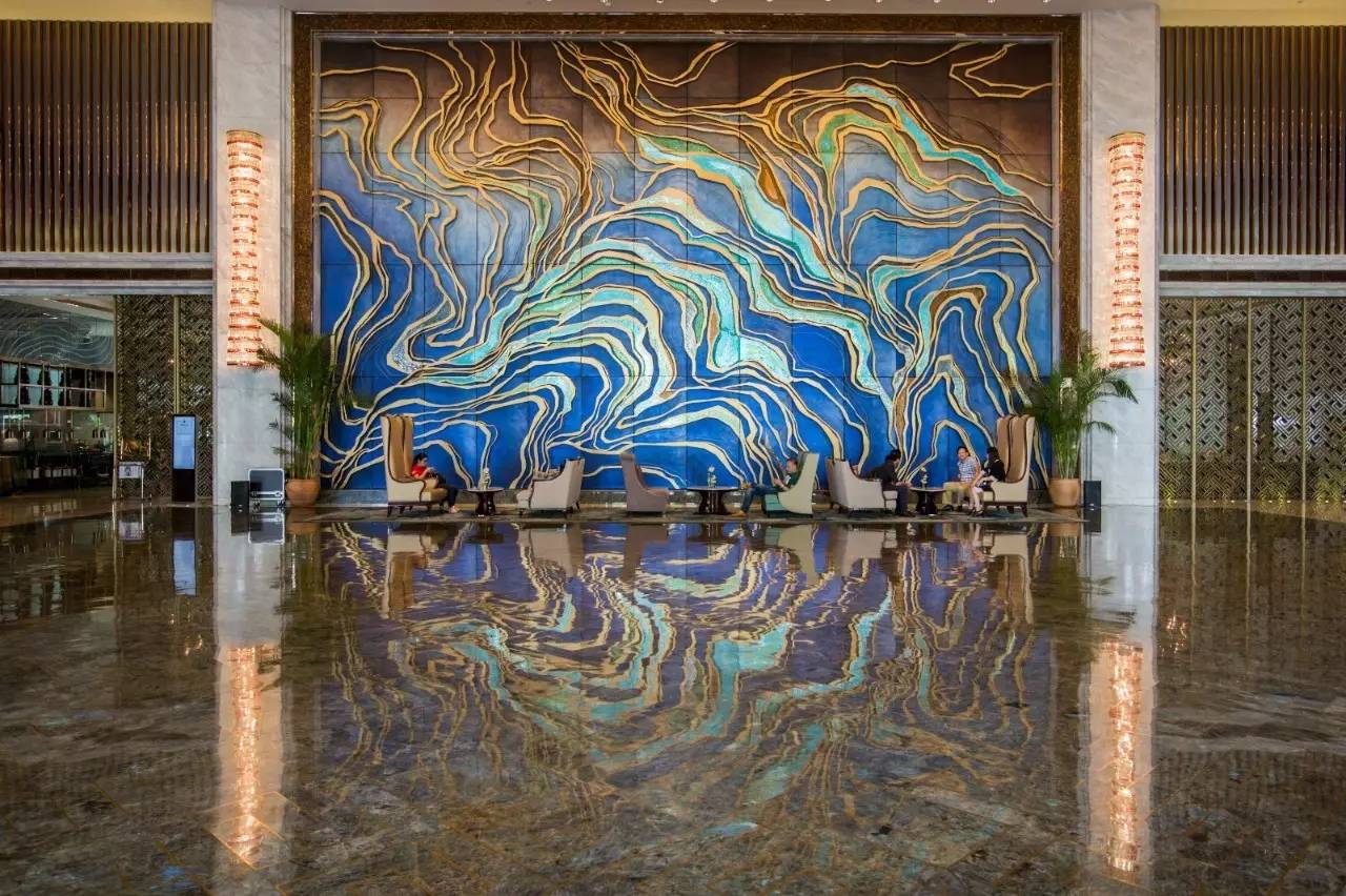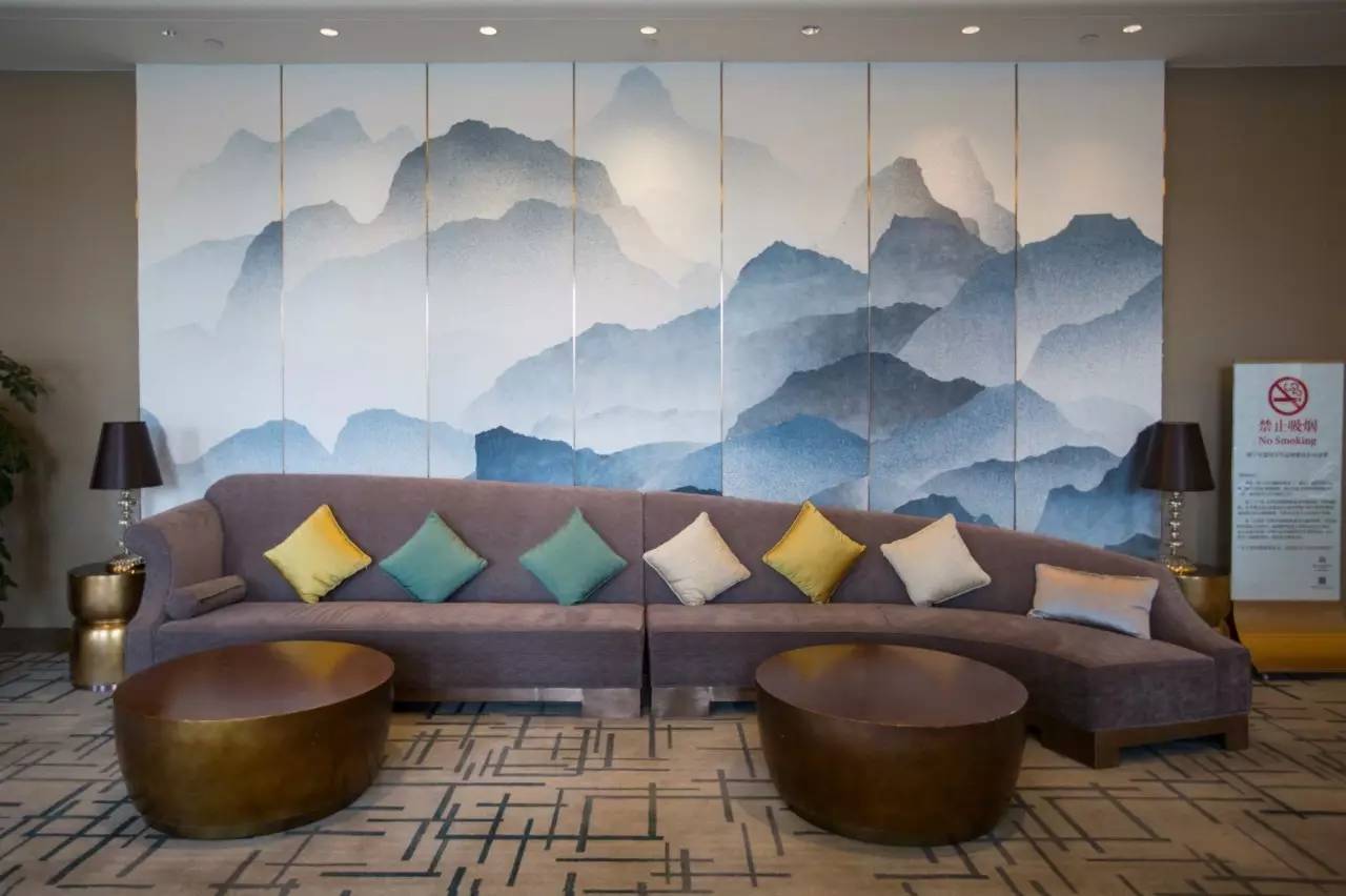 一进大堂,就被主背景墙的巨幅画作所震撼,不仅有视觉降温的效果,更是让人随着描绘的行云流水而浮想联翩。