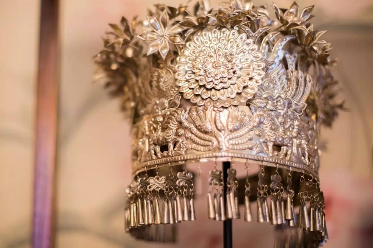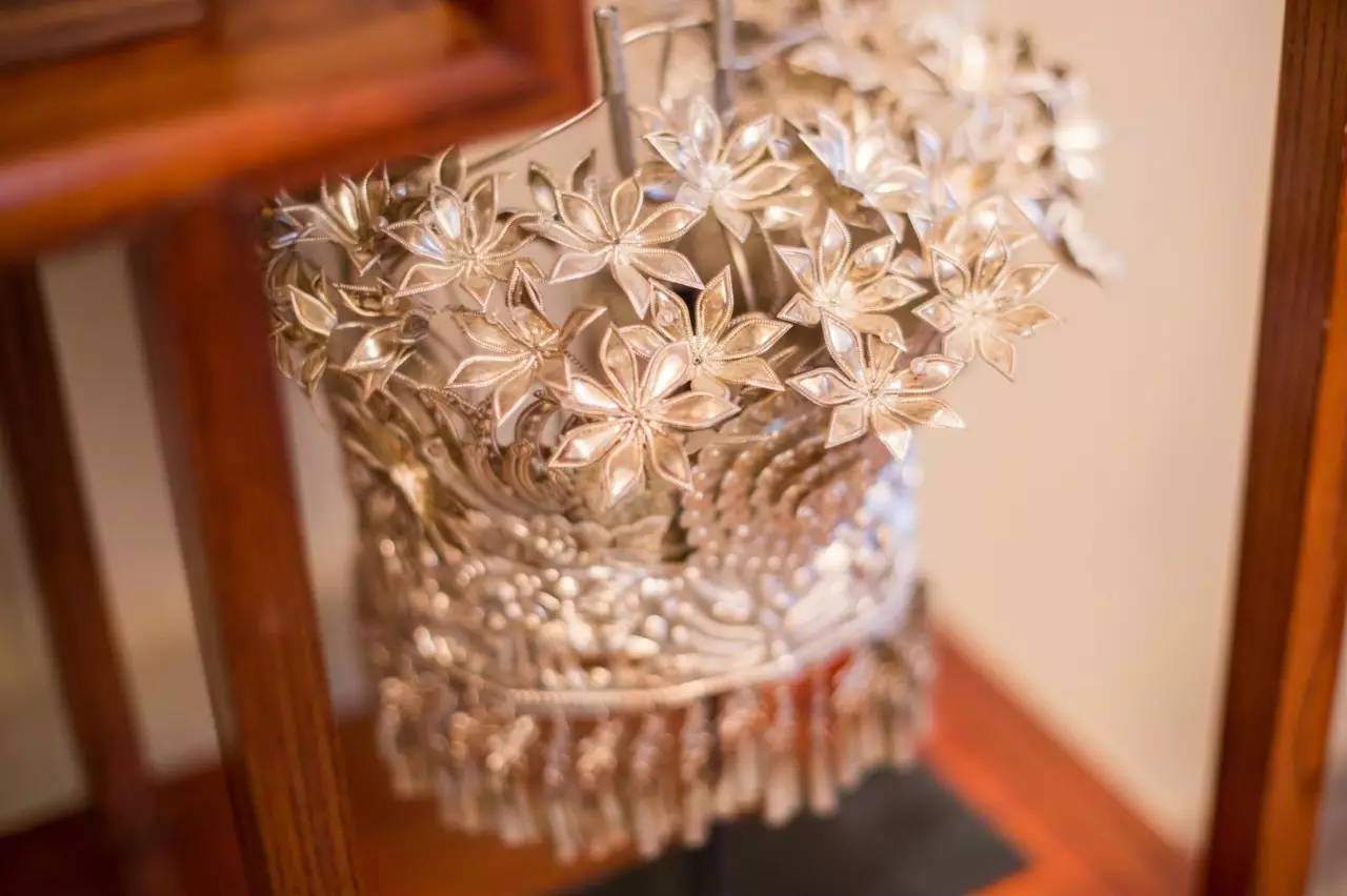 苗族姑娘头上戴的华美银饰,掂一下其实非常轻盈。