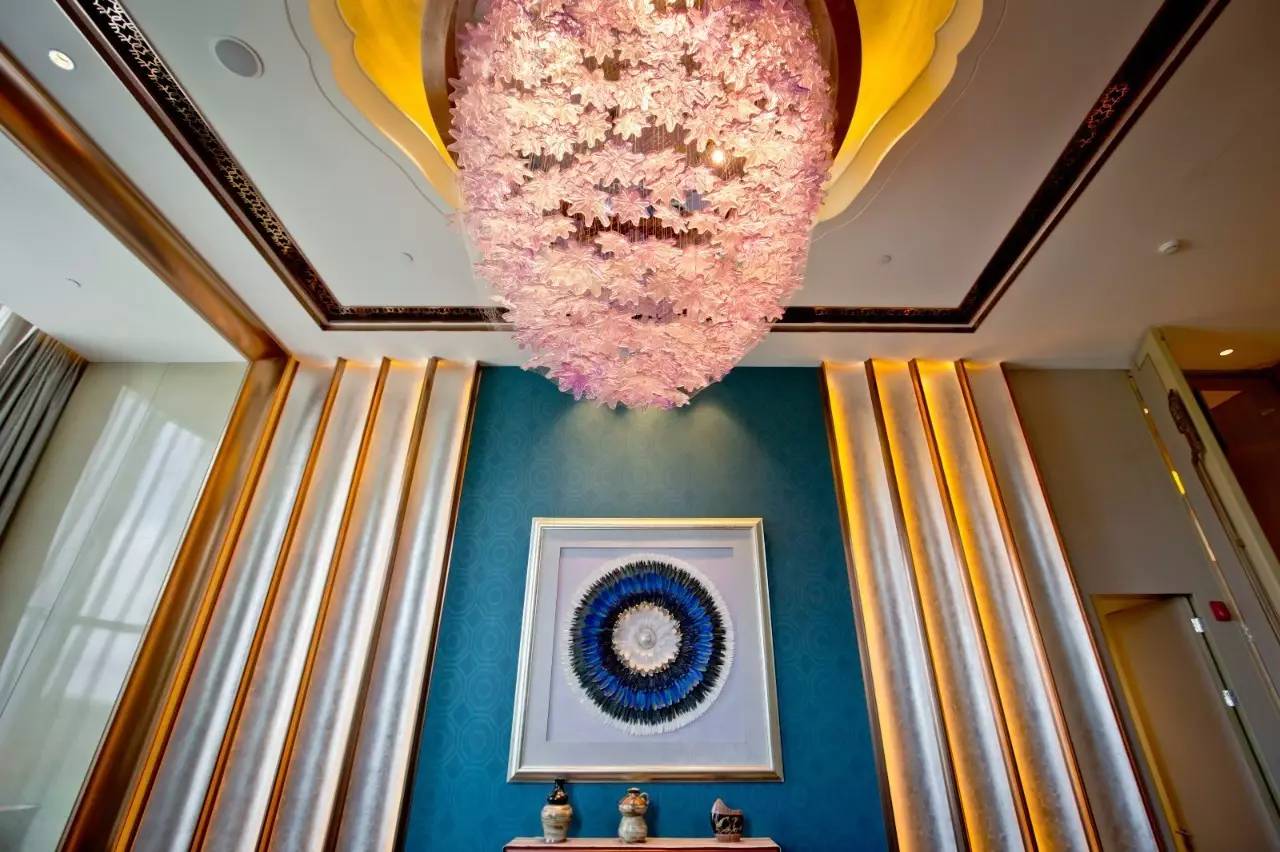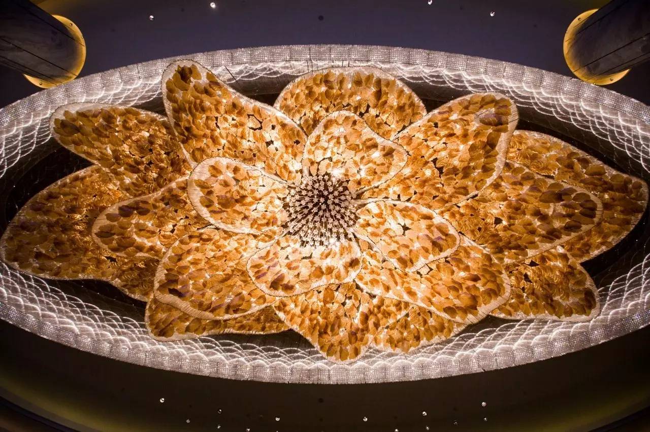 华丽的灯饰是万达酒店的特色之一,南宁市花是朱槿花,象征“凝聚,绽放,繁荣”,酒店处处可看到以此花为原型的精美灯饰,漫步其中,仿佛身处一片朱槿花丛。