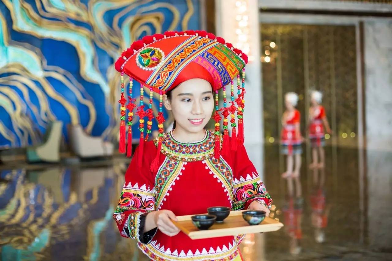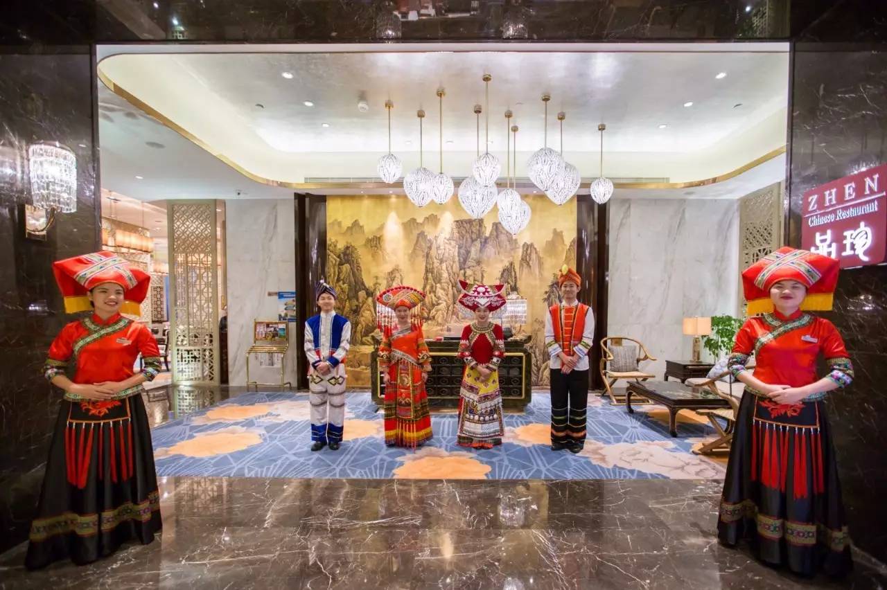 酒店大堂前台工作人员,也有身着少数民族服饰,亲切有礼帮你解决遇到的任何问题。
