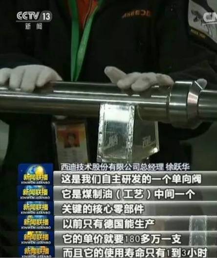 2016年11月26日的新闻联播报道称,有一种单向阀,是煤制油工艺中一个关键的核心零部件。