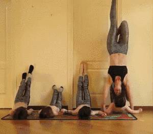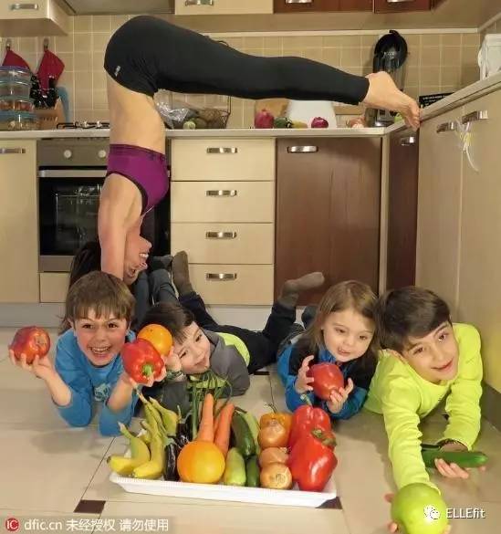 4个孩子在刷牙的时候,妈妈会一边擦锅一边做瘦腿操。等到孩子们玩起来,随手就是一个“厨房倒立”。