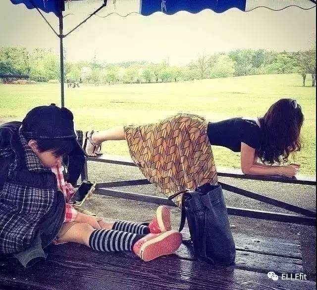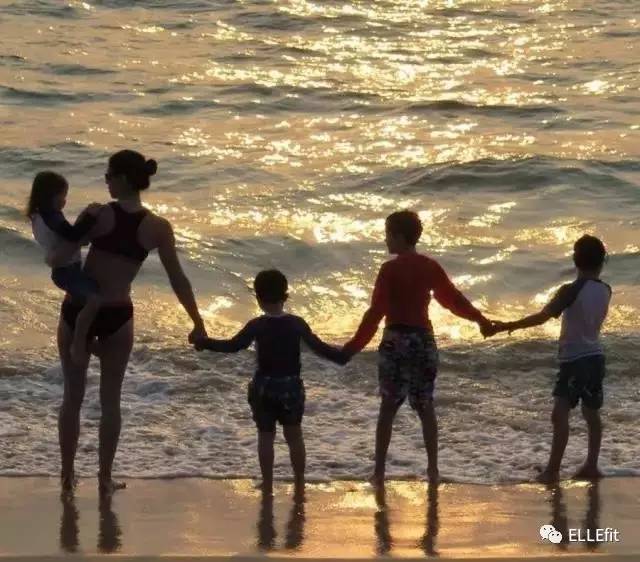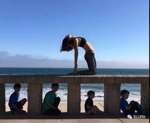 和孩子在一起时都是运动的好时候,比如他们会在你练习倒立的时候一字排开躺在地毯上给你一个吻,在沙滩上跟着你做箭步蹲,并主动担当你的“沙袋”。