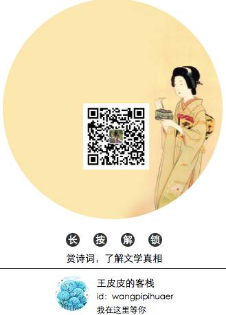 王皮皮:毕业于武汉大学中文系,一个热爱写字的吃货。公众号:王皮皮的客栈(wangpipihuaer)是一个陪你穿越到古代的公众号,赏析诗词,解读诗词背后的诗人诗事。并以小说形式铺陈各个时代的风土风俗和人情人性。欢迎关注。