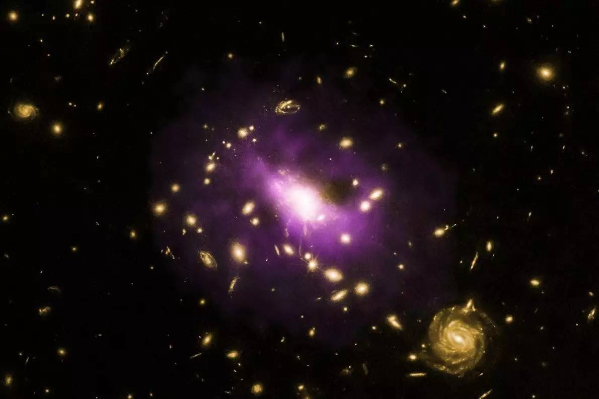 NASA望远镜从目前观测到的最强大的超大质量黑洞之一附近捕获了X射线,这个黑洞距离地球约39亿光年(图源:NASA,CXC,Stanford,J.Hlavacek-Larrondo等人)
